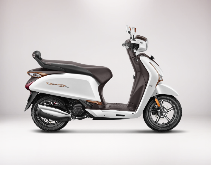 { "Engine": { "Type": "Air cooled, 4 stroke, SI engine", "Displacement": "124.6 cc", "Max Power (bhp/rpm)": "9 bhp @ 7000 rpm", "Max Torque (Nm/rpm)": "10.4 @ 5500 rpm", "Ignition":"Fuel Injection (FI)" }, "Transmission": { "Type": "Dry, Centrifugal", "Clutch Type": "CVT" }, "Suspension": { "Front": "Telescopic Fork", "Rear": "Single Coil Spring Hydraulic Type" }, "Tyres": { "Front Tyre": "90/90 - 12", "Rear Tyre": "100/80 - 12" }, "Dimensions": { "Length": "1862 mm", "Width": "Disc - 703 mm (ZX+ & ZX) ; Drum - 697 mm (VX)", "Height": "1125 mm", "Wheelbase": "1302 mm", "Seat Height": "770 mm", "Ground Clearance": "162 mm" }, "Electricals": { "Battery": "12V-4Ah/ETZ-5 (MF Battery)", "Starting System": "Electric Start/ Kick Start" }, "Weight": { "Kerb Weight": "115 kg", "Fuel Tank Capacity": "5.3 Litres" } }