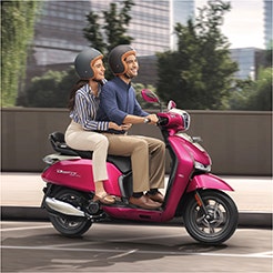 { "Engine": { "Type": "Air cooled, 4 stroke, SI engine", "Displacement": "124.6 cc", "Max Power (bhp/rpm)": "9 bhp @ 7000 rpm", "Max Torque (Nm/rpm)": "10.4 @ 5500 rpm", "Ignition":"Fuel Injection (FI)" }, "Transmission": { "Type": "Dry, Centrifugal", "Clutch Type": "CVT" }, "Suspension": { "Front": "Telescopic Fork", "Rear": "Single Coil Spring Hydraulic Type" }, "Tyres": { "Front Tyre": "90/90 - 12", "Rear Tyre": "100/80 - 12" }, "Dimensions": { "Length": "1862 mm", "Width": "Disc - 703 mm (ZX+ & ZX) ; Drum - 697 mm (VX)", "Height": "1125 mm", "Wheelbase": "1302 mm", "Seat Height": "770 mm", "Ground Clearance": "162 mm" }, "Electricals": { "Battery": "12V-4Ah/ETZ-5 (MF Battery)", "Starting System": "Electric Start/ Kick Start" }, "Weight": { "Kerb Weight": "115 kg", "Fuel Tank Capacity": "5.3 Litres" } }